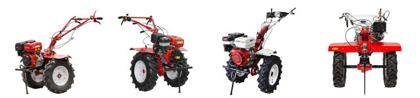 Это профессиональные машины мощностью 5.5-6.5 л.с., с качественными редукторами, массой от 35 до 65 кг. и настроены таким образом чтобы ваши руки и спина не страдали во время работы. Как правило, для минимизации стоимости - идут без колес.