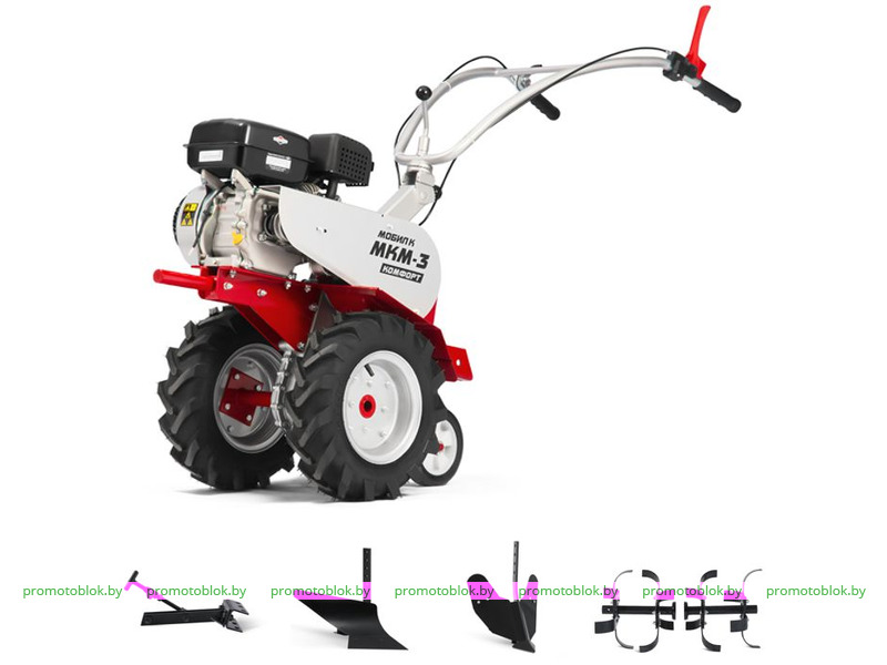 Мотоблок Мобил К МКМ-3 КОМФОРТ с двигателем Мобил К LL 170F 7.0 л.с.предназначен для обработки участков от 5 до 10 соток земли. Выполняемые работы: